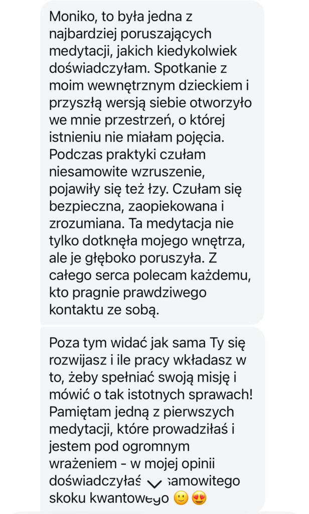 Mam na imię Monika. Jestem certyfikowaną specjalistką w zakresie teorii poliwagalnej, uczę się bezpośrednio od Stephena Porgesa, twórcy tej teorii. Właśnie rozpoczęłam zaawansowane szkolenie z Michaelem Alisonem, w którym zgłębiam, jak wykorzystywać energię reakcji „walcz lub uciekaj” do uruchamiania potencjału i zmiany, zamiast wyładowywać ją w krzyku,