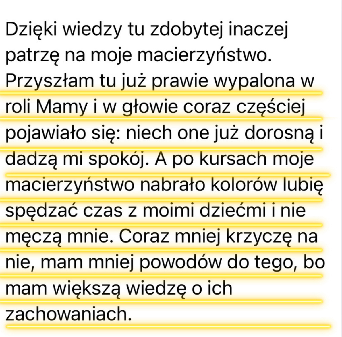 • z tygodnia na tydzień czujesz mniej napięcia i coraz rzadziej krzyczysz.