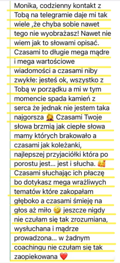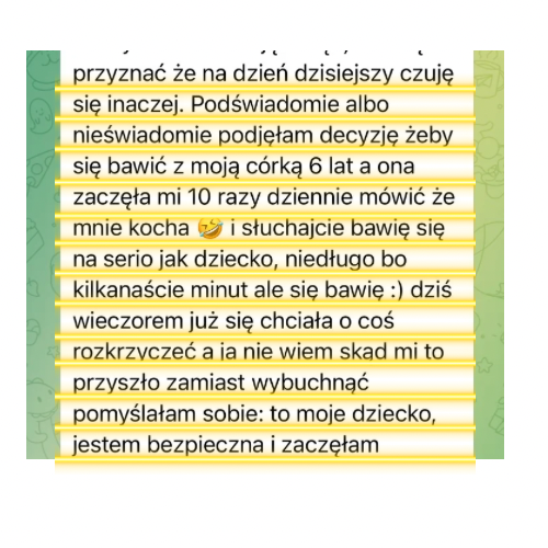 • masz moje osobiste wsparcie dokładnie wtedy, kiedy wszystko się dzieje na wspólnej grupie na telegramie dwa razy w tygodniu